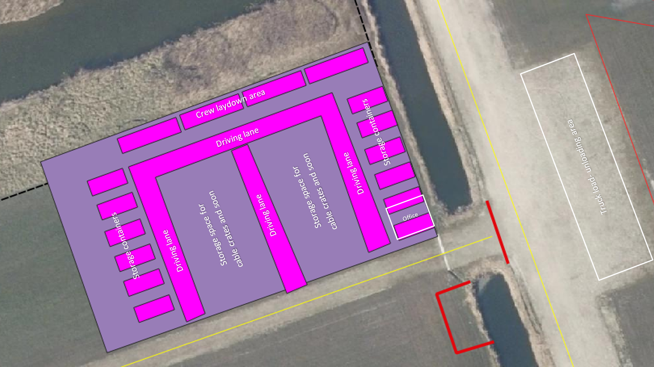 * Storage space for cable crates and stuff that won’t be delivered or transported in containers.